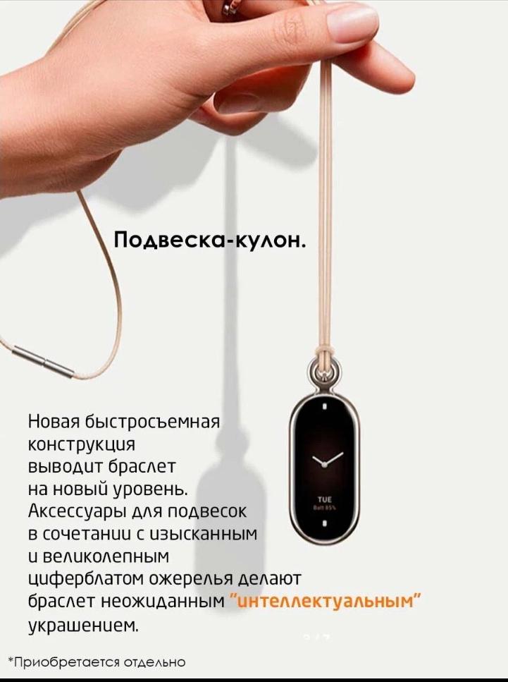 Устройство можно носить не только на запястье, но и на шее. Даже в виде кулона Xiaomi Smart Band 8 продолжает тщательно отслеживать основные показатели здоровья. Теперь ваш фитнес-браслет может стать стильным аксессуаром.