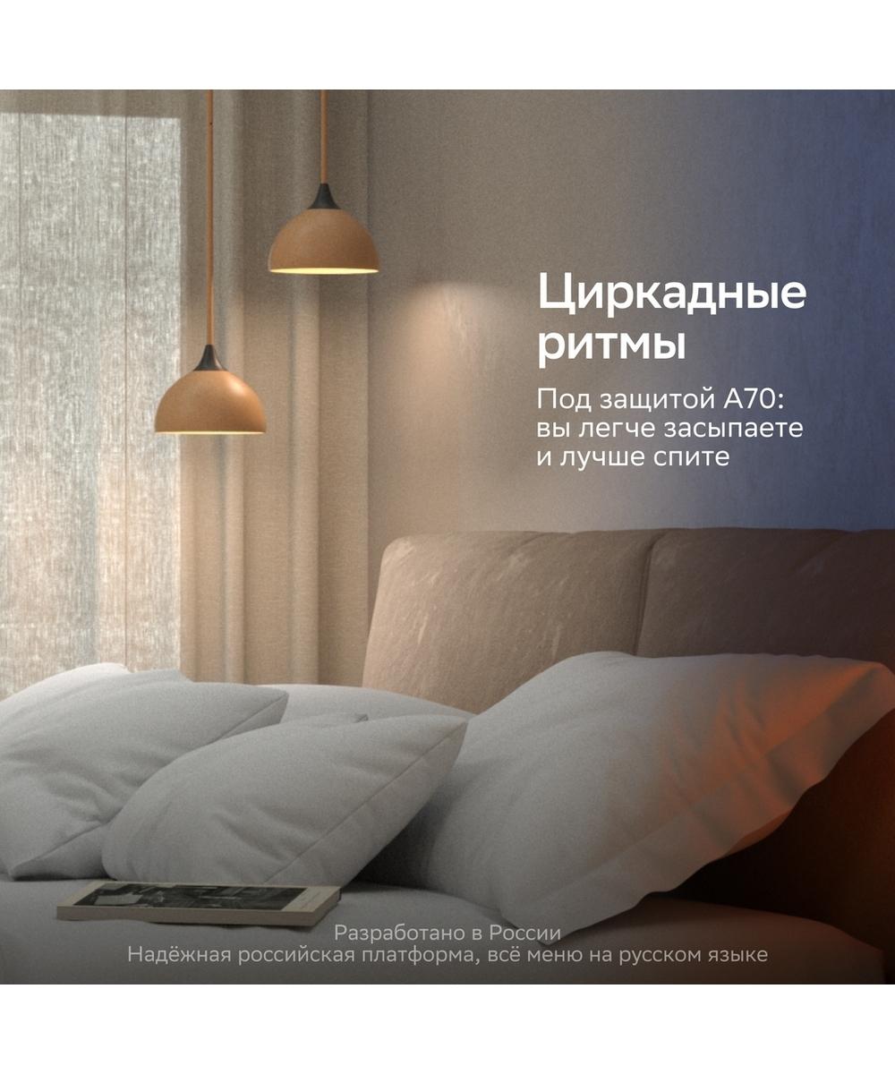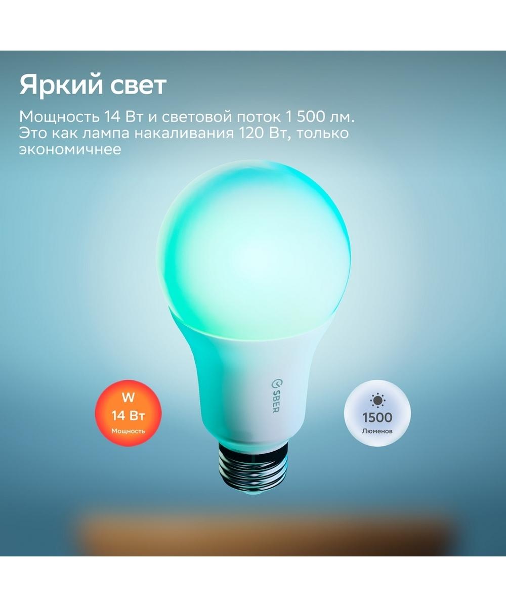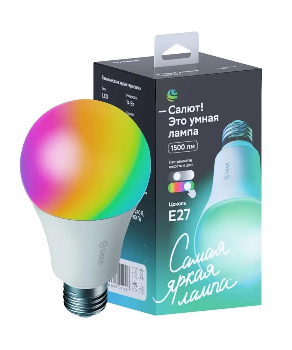 Умная лампа SBER SBDV‑00120 — современное светодиодное осветительное устройство с интеллектуальными функциями, рассчитанное на стандартный цоколь E27. Лампа выполнена в форм‑факторе А70 («большая груша»): её диаметр составляет 72 мм ± 0,5 мм, высота — 135 мм ± 1 мм. Корпус изготовлен из пластика, цоколь — из алюминия.