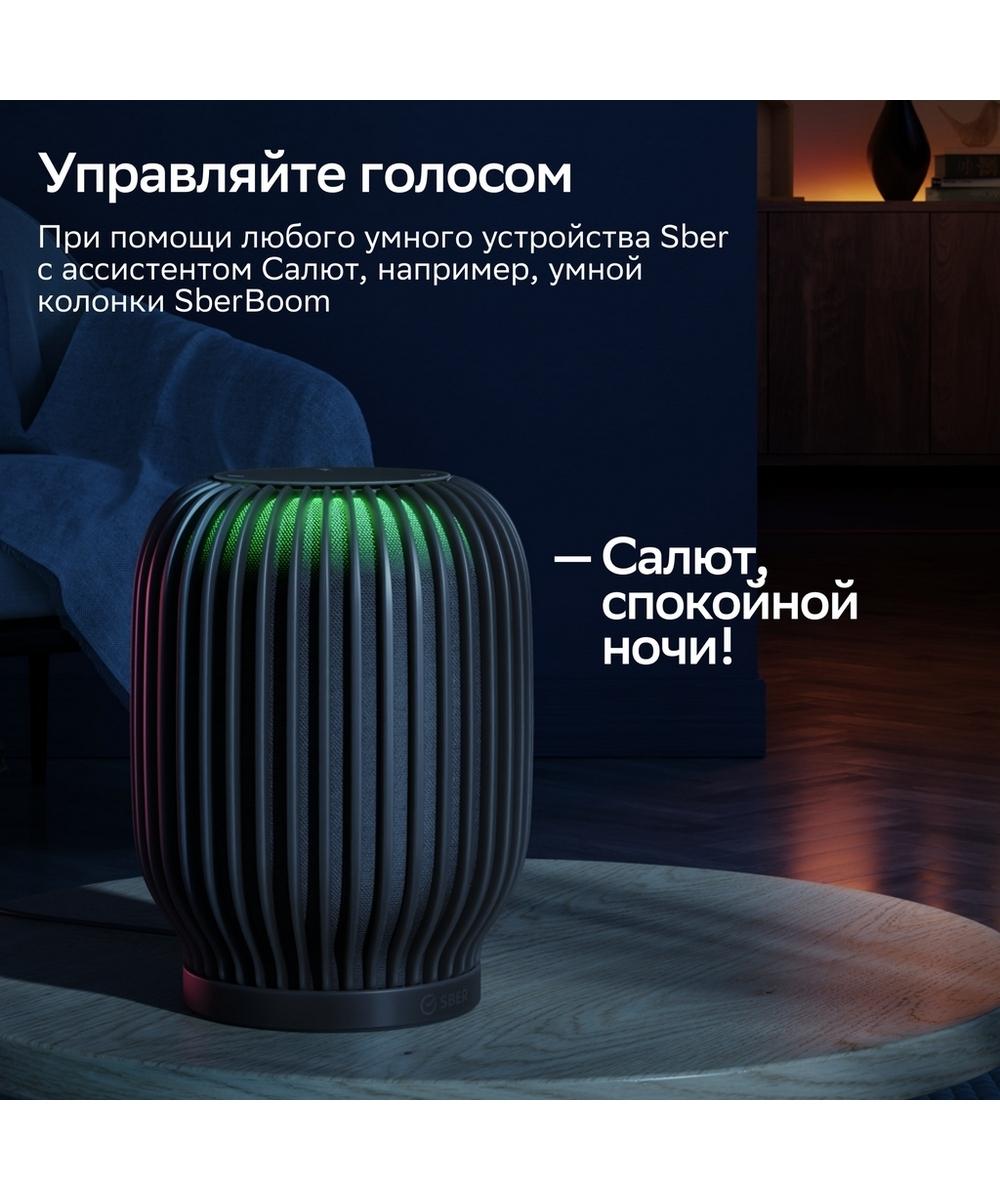 Лампа оснащена беспроводными интерфейсами Wi‑Fi (802.11b/g/n, 2,4 ГГц) и Bluetooth LE 4.2 (2,4 ГГц), что позволяет управлять ей через мобильное приложение «Сбер Салют». С его помощью можно настраивать яркость и цвет, задавать расписания включения и выключения, а также выбирать готовые режимы («рассвет», «северное сияние» и др.). После перебоев электропитания лампа продолжает работать в последнем выбранном режиме (при условии, что до отключения она проработала не менее 10 секунд).