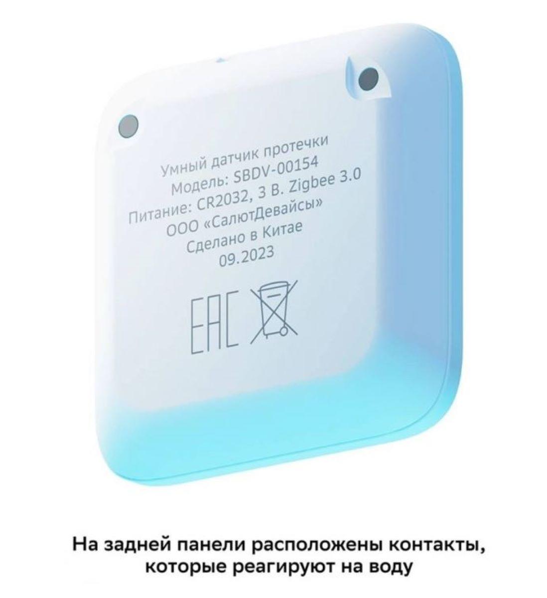 SBDV-00154 — это удобный датчик протечки воды, который встраивается в экосистему Умного дома. Когда жидкость замыкает контакты на нижней части корпуса, устройство срабатывает и сигнализирует о протечке. Пользователь может самостоятельно настроить сценарии автоматизации. Например, после обнаружения протечки датчик отправит уведомление на смартфон и перекроет умный кран.