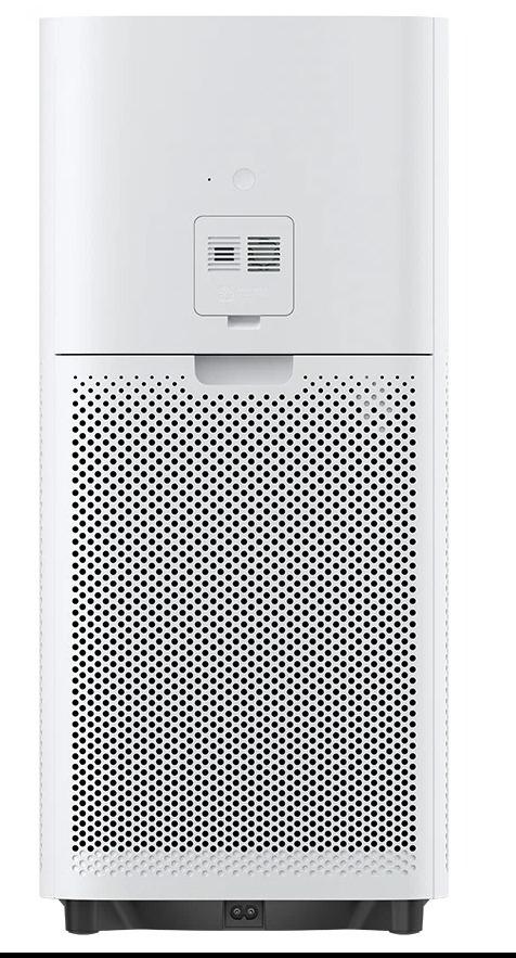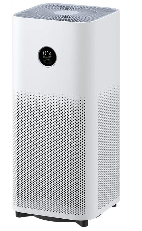 Xiaomi Air Purifier 4 обладает белым корпусом из АБС-пластика и большим воздухозаборным отверстием. Задняя крышка легко открывается и закрывается благодаря магнитной конструкции. Воздуховоды необходимо регулярно чистить от загрязнений. OLED-дисплей в режиме реального времени отображает количество частиц PM2.5 в воздухе и режим работы. Качество воздуха наглядно показывается при помощи цветного индикатора. Зеленый цвет - хорошее качество, желтый - среднее и красный - плохое. Когда придет время заменить фильтр, очиститель оповестит об этом пользователя изображением на дисплее. Под экраном можно заметить 2 сенсорные кнопки. Одна из них отвечает за включение/выключение устройства, а вторая позволяет регулировать режим работы. Очиститель Xiaomi Air Purifier 4 получил специальный датчик, который в режиме реального времени определяет степень загрязненности воздуха и регулирует интенсивность его работы. Оптический сенсор обнаруживает частицы размером до 0,3 мкм.