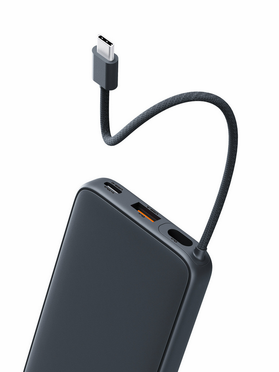 Серый внешний аккумулятор Aukey PB-Y46P полностью заряжается за четыре часа.