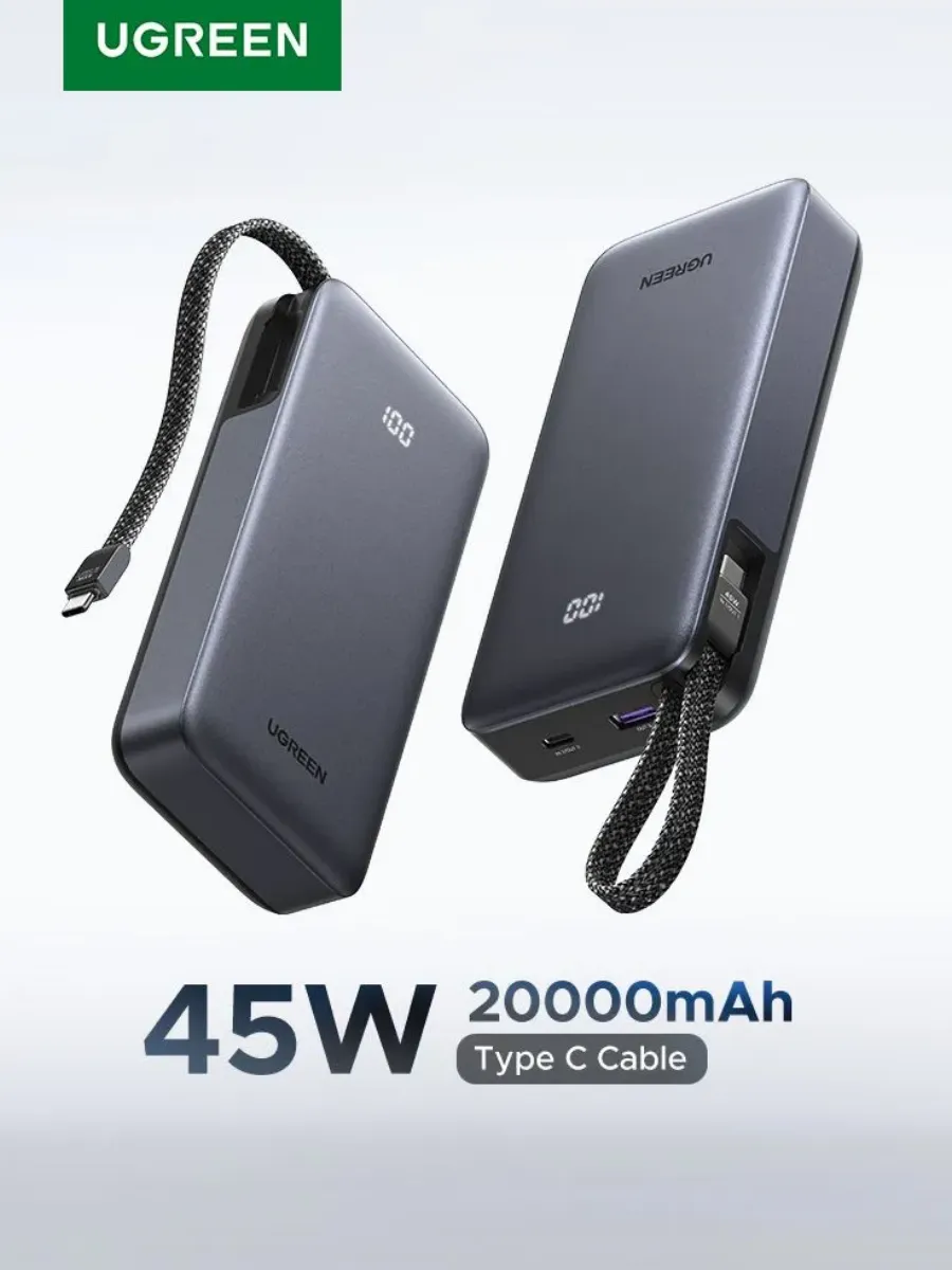 Внешний аккумулятор Ugreen PB536 PD емкостью 20000 mAh оснащен 2 разъемами Type-C + USB-A + встроенным кабелем, что позволяет подключить к нему одновременно до 3 устройств и не беспокоиться об их безопасности. Встроенная защита эффективно предотвращает их повреждение. Интеллектуальная система определяет тип подключенного устройства и автоматически регулирует силу тока и напряжения. Полная защита как аксессуара, так и заряжаемых устройств от перезарядки, перегрева и коротких замыканий.