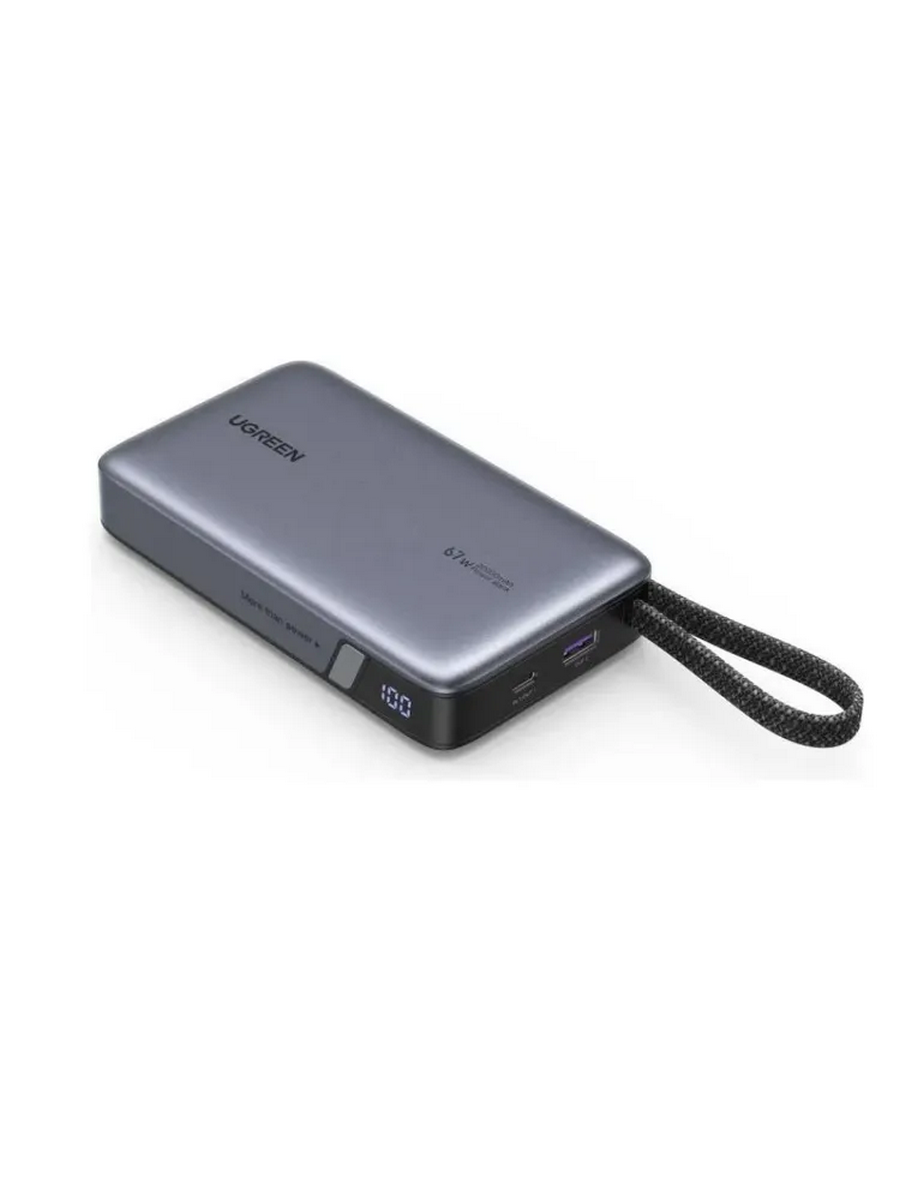 Повербанк мощностью 67Вт. На корпусе расположен дисплей, по которому можно определить на сколько заряжен аккумулятор.