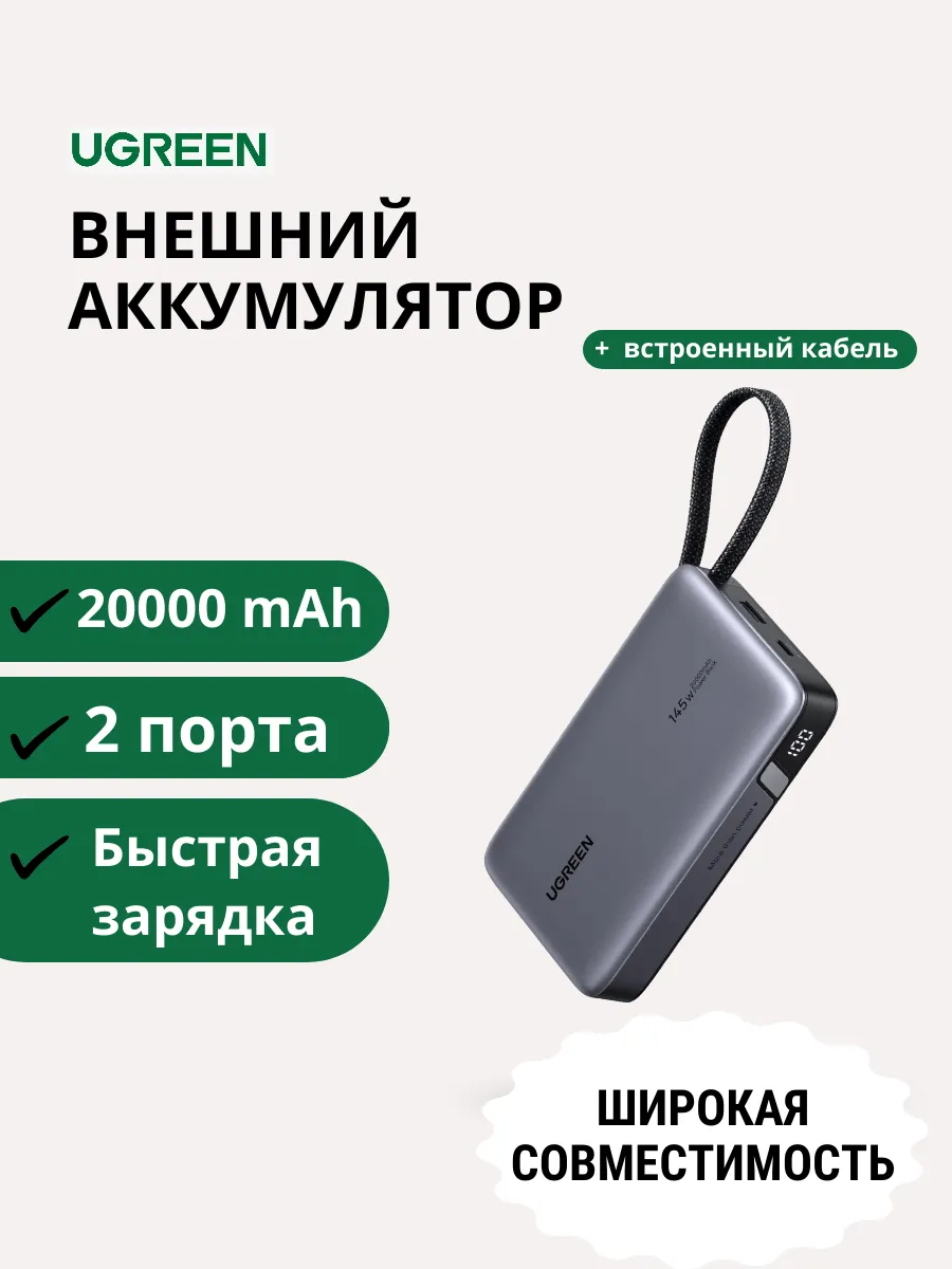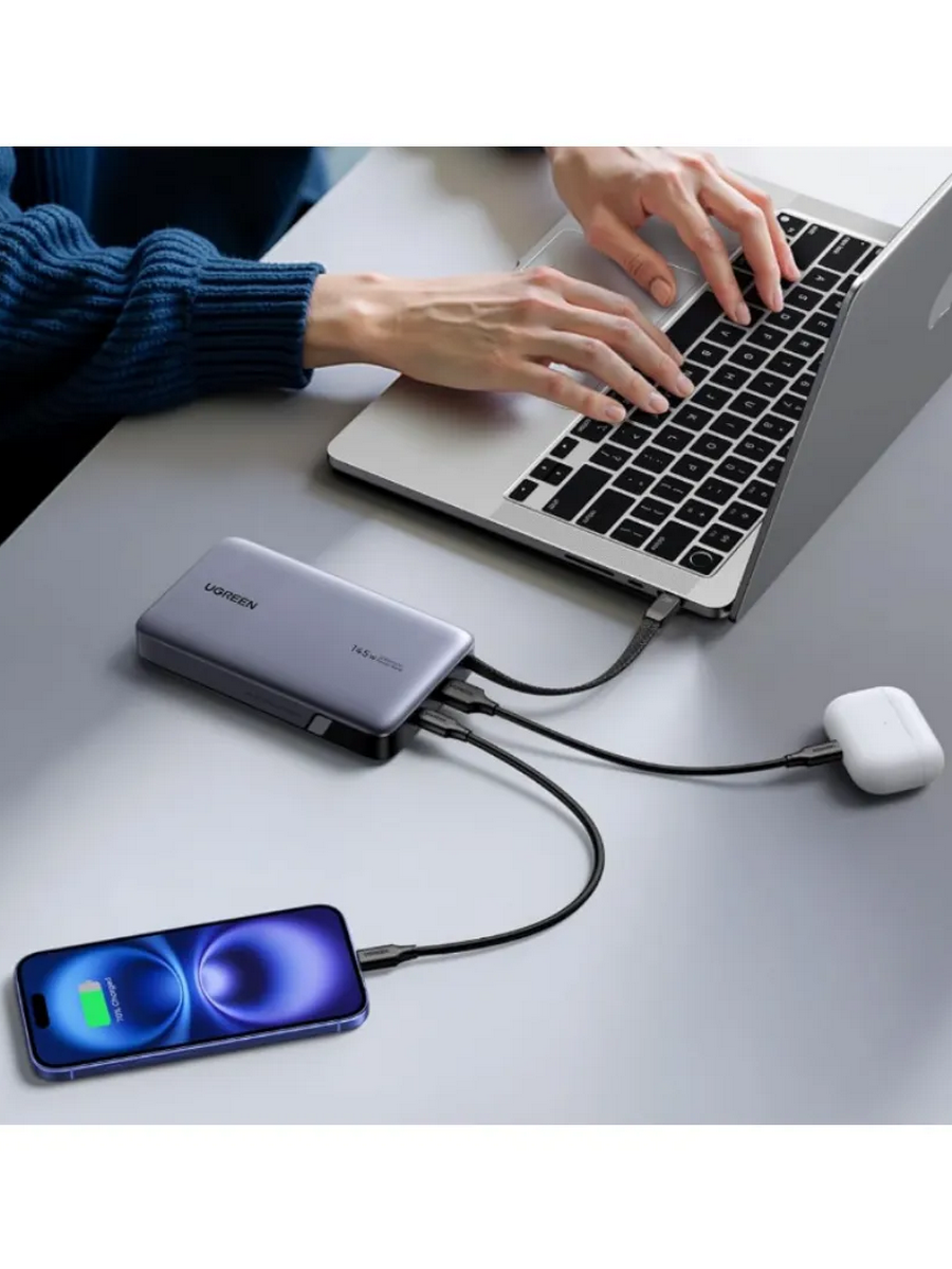 Внешний аккумулятор Ugreen PB551 PD3.0 емкостью 20000 mAh оснащен 2 разъемами Type-C + USB-A + встроенным кабелем, что позволяет подключить к нему одновременно до 3 устройств и не беспокоиться об их безопасности. Встроенная защита эффективно предотвращает их повреждение. Интеллектуальная система определяет тип подключенного устройства и автоматически регулирует силу тока и напряжения. Полная защита как аксессуара, так и заряжаемых устройств от перезарядки, перегрева и коротких замыканий.