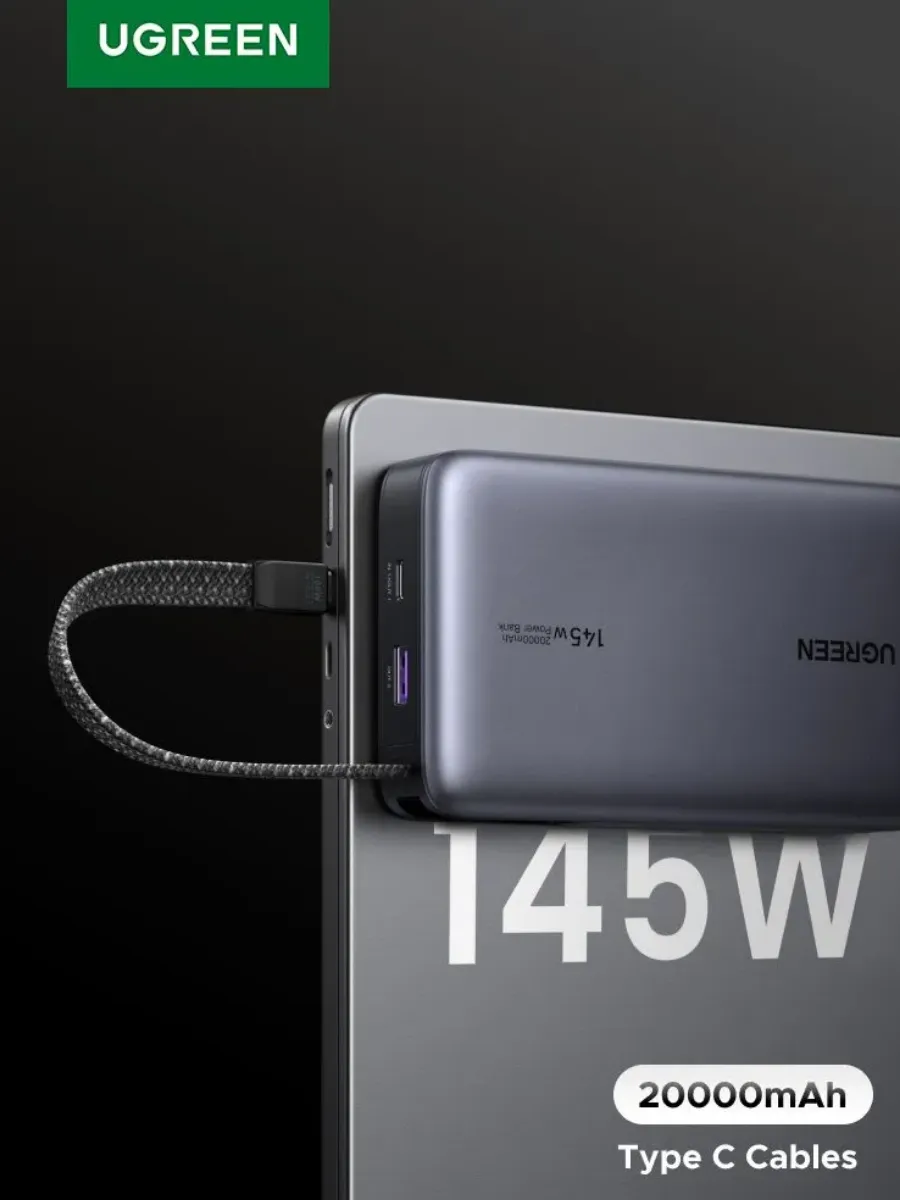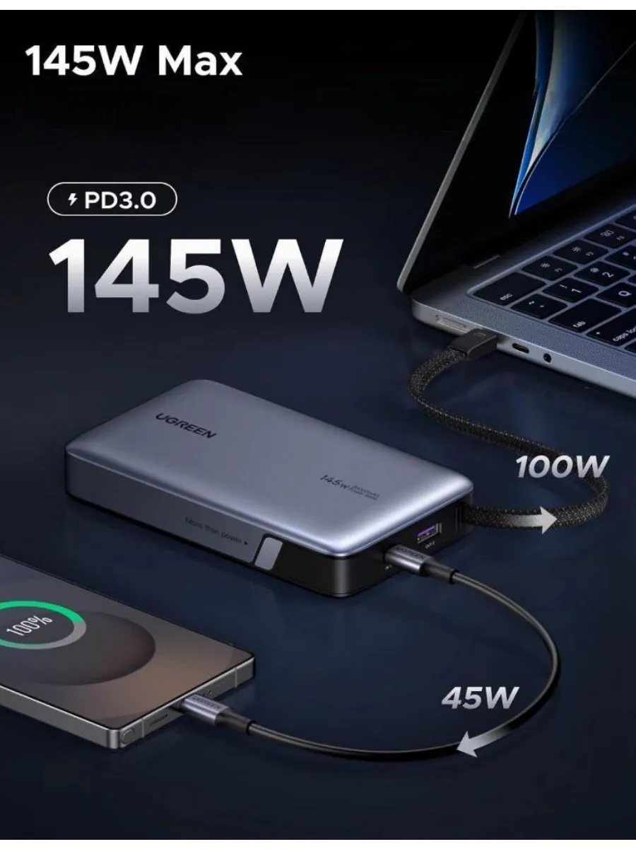 Повербанк мощностью 145Вт. На корпусе расположен дисплей, по которому можно определить на сколько заряжен аккумулятор.