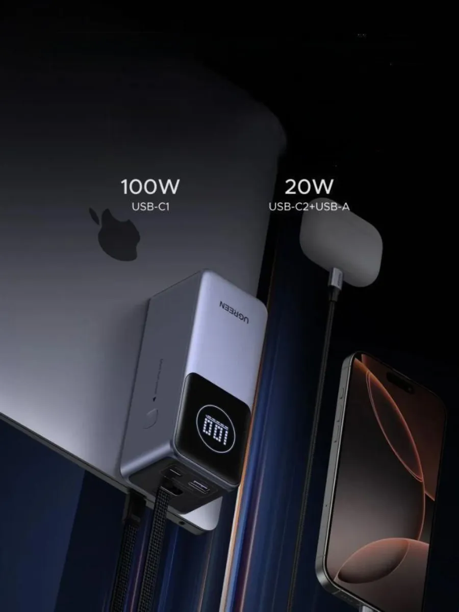 Внешний аккумулятор Ugreen PB723 (55365B) PD 20000mAh,130W оснащен 2 разъемами 1хType-C +1хUSB-A и встроенным кабелем USB-C, что позволяет подключить к нему одновременно несколько устройств и не беспокоиться об их безопасности. Встроенная защита эффективно предотвращает их повреждение. Интеллектуальная система определяет тип подключенного устройства и автоматически регулирует силу тока и напряжения. Полная защита как аксессуара, так и заряжаемых устройств от перезарядки, перегрева и коротких замыканий.
