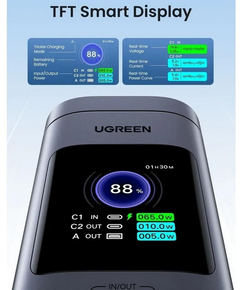 Повербанк мощностью 145Вт. На корпусе расположен цветной дисплей, по которому можно определить на сколько заряжен аккумулятор.