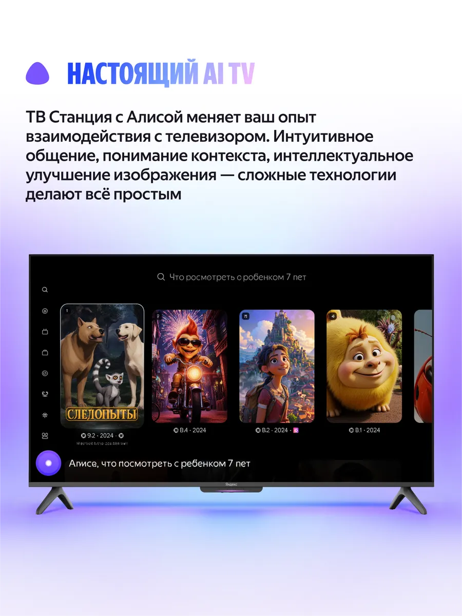 Яндекс ТВ Станция 2 55" с Алисой — это умный телевизор нового поколения, сочетающий в себе передовые технологии и уникальные возможности голосового управления.