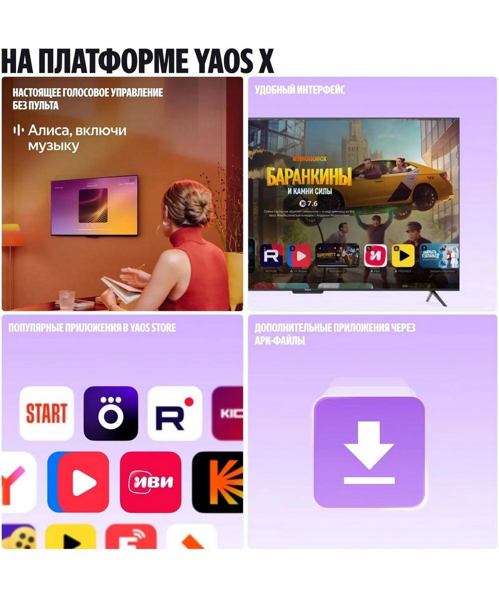 Телевизор Яндекса оснащён QLED-экраном и аудиосистемой мощностью до 30 Вт.