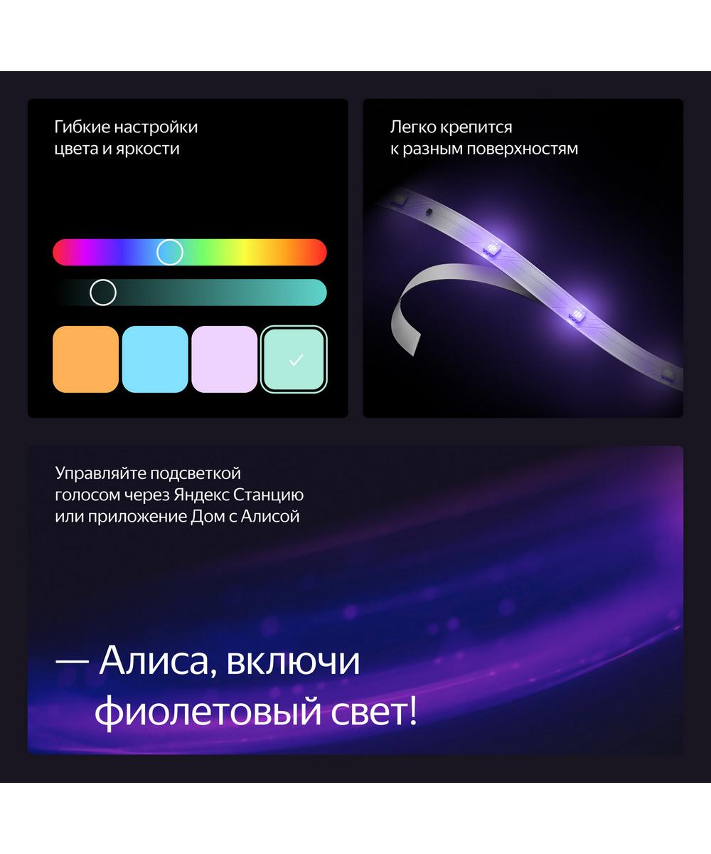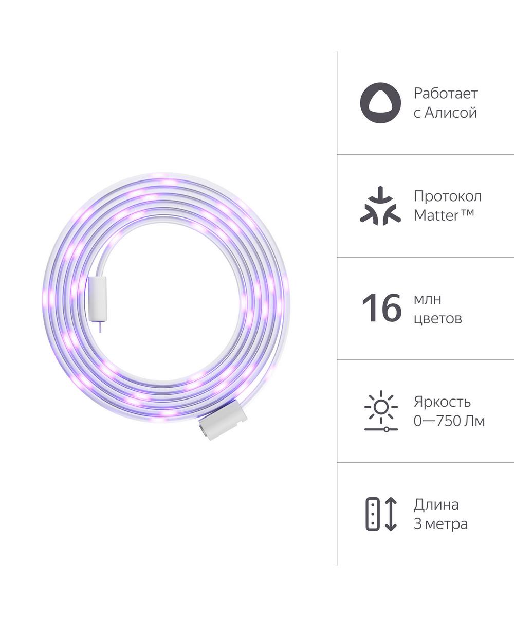 Умная светодиодная лента Яндекса — с ней легко создавать дома атмосферное освещение и управлять им голосом с помощью Алисы через устройство Яндекс Станцию или приложение «Дом с Алисой». Работает на современном универсальном протоколе связи Matter™ — легко подключается к умному дому, а настроенные сценарии с лентой могут работать, даже если отключится интернет. 16 миллионов цветов, гибкие настройки температуры и яркости свечения — настраивайте режимы свечения или пользуйтесь готовыми.
