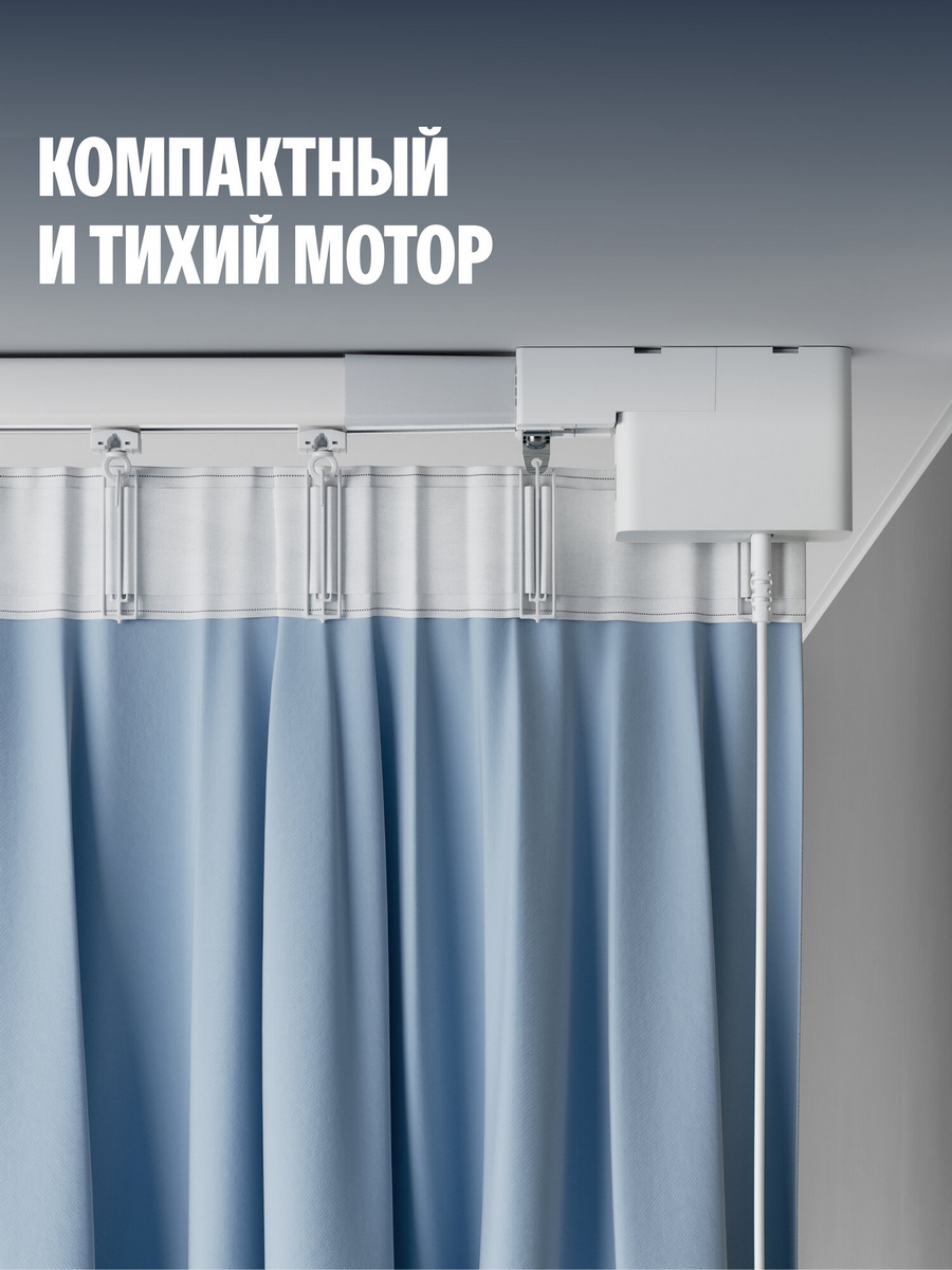 Уникальный бесщёточный мотор обеспечивает плавную, бесшумную работу без вибраций, чтобы вы могли просыпаться от мягкого солнечного света, а не от шума открывающихся штор. Мотор долговечен¹ и потребляет мало энергии, а его мощности хватит, чтобы двигать даже тяжёлые шторы весом до 50 кг.